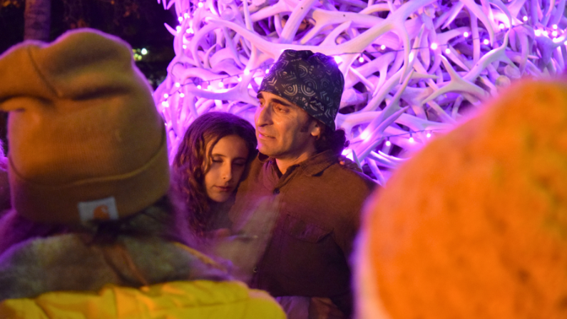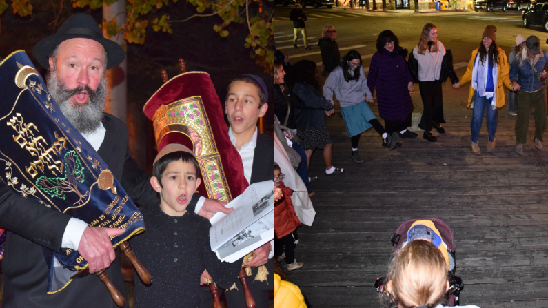 Rabbi Zalman Mendelsohn of the Chabad Jewish Community led dozens in song in the Town Square Oct. 13 alongside members of his family, the Jackson Hole Jewish Community and the Christian church Tribe. (Dante Filpula Ankney / KHOL)