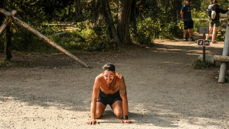 Sunseri collapsed at the Lupine Meadows Trailhead in Grand Teton National Park on Sept. 2, 2024 believing he had broken the Fastest-Known-Time. (Courtesy of Outside / PR)